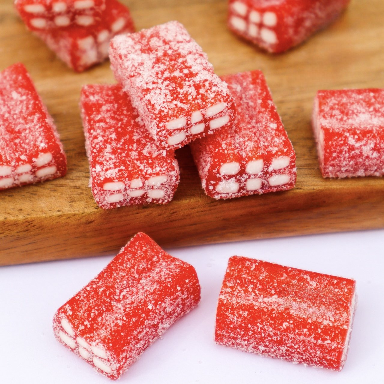 Strawberry Brick, the delightful sugar-coated strawberry candy that’s sure to leave a lasting impression! With its irresistibly sweet flavour and unforgettable taste, it is a treat that will satisfy your cravings and bring a smile to your face. Enjoy this friendly and delicious confectionary delight today by ordering it from Godis Fábrica!